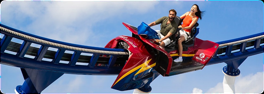 BOLT™ 海上雲霄飛車 全長約203公尺,可選擇手動加速或享受固定速度,俯瞰甲板與海景~